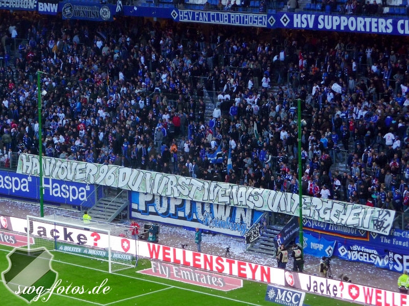 Der wunderschöne HSV hatte mittlerweile Gefallen am Siegen gefunden und krönte eine gelungene Auswärtsfahrt nach Köln (inklusive schöner Choreo) mit dem nächsten 1:0 Sieg (diesmal Tor Rosenthal nach Vorarbeit Ya Konan). Es hatte sich, so schien es, eine gute Stammelf gefunden und unser Nationaltorwart Robert Enke gab nach längerer Pause auch wieder sein Comeback zwischen den Pfosten des 96-Tores. Ein 2:2 gegen den anderen HSV der Liga festigte den hart erkämpften Mittelfeldplatz (wieder mal Stajner und Ya Konan) und alle sahen 96 auf einem guten Weg.