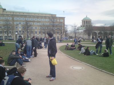 Da es in Freiburg soviel Glück brachte und Stuttgart ja auch in Baden-Württemberg liegt, wurde zum Auswärtsspiel beim VfB wieder Bus gefahren und abermals mitten in der Nacht gestartet. Erneut waren vormittags bei Zielankunft die meisten Businsassen ziemlich gerädert. Es gab nun mit mehreren Busbesatzungen einen großen „Chill-Out“ am Schlossplatz und die etwas fitteren Genossen machten einen Stadtbummel durch die Hauptstadt des so genannten Ländle. Danach wurde sich noch ein anerkennendes Lob im Clubhaus des PSV Stuttgart abgeholt („Wir haben hier jedes Jahr alle 17 Gästefanszenen sitzen, aber niemand säuft soviel wie Hannover“) und dann ging es rauf auf die Baustelle Gottlieb-Daimler-Stadion. Dort war wie immer nichts zu holen für 96. Doppelt ärgerlich, da an diesem Spieltag auch Freiburg gewann und ebenso die totgeglaubte Hertha ein Lebenszeichen sendete.