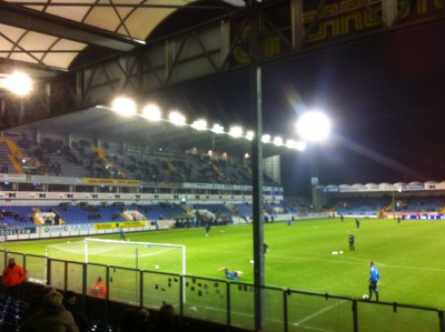 Im Genter Vorort Gentbrugge fand heute das Spiel des KAA Gent gegen den KVC Westerlo statt. Bis wir unser Auto in Stadionnähe parkten, hielt unsere Mutter das Ganze mit dem Fußballspiel immer noch für einen Scherz. Aber für Scherze war die Mission Xmas-Ground viel zu ernst. Schließlich soll das Jules-Otten-Stadion bald einer neuen Arena weichen. Seltsamerweise ließ sich die oppositionelle Verwandte in unserem Auto (okay, eigentlich hat sie es ja bezahlt…) nicht mal mit den Verheißungen des VIP-Raums aus dem Fahrzeug locken. Diese Fundamentalistin war bereit für ihre Überzeugungen 2,5 Stunden außerhalb des Stadions zu frieren und weil Weihnachten war, respektierten wir ihren Wunsch auf einen fußballfreien Abend und verabschiedeten uns ins Stadion.