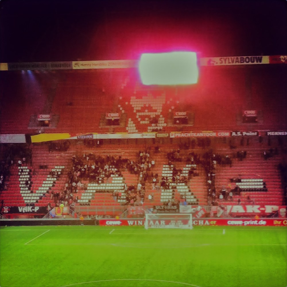Der 1.Spieltag der Gruppenphase führte uns nach Enschede in die Niederlande. Wenig exotisch! Und bei gerade einmal 230 km Distanz ist der deutsche Sportjournalist ja schon fast dazu geneigt das Ganze zum Derby zu stilisieren. Das ist natürlich Quatsch und hat meines Wissens nicht einmal Heiko Rehberg gewagt. Aber so richtiges Europapokal-Feeling kommt irgendwie auch nicht auf, wenn man aus Hannover in eine Stadt an der niedersächsisch-niederländischen Grenze fährt. Hat distanztechnisch was von Meppen auswärts. Das war ein Europapokalspiel wofür die meisten nicht mal Urlaub nehmen mussten. Und das wiederum kam auch mir gelegen. Ich konnte betriebsbedingt nur fünf Urlaubstage des Jahres 2012 in die zweite Jahreshälfte rüber retten und die sollten am besten für alle drei Gruppen(auswärts)spiele reichen.
