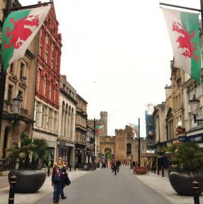 Unsere Reise gestalteten wir preiswert mit Ryanair von Bremen nach London und von dort ging’s per InterCity weiter nach Cardiff. Am Montagmorgen wurde in Bremen abgehoben und bereits zur Mittagszeit erreichten wir den Bahnhof Cardiff Central. Der Tageszeit entsprechend, war uns sogleich nach einer warmen Mahlzeit und dafür waren wir mit Schirm in einem großen Pub am Bahnhof namens Prince of Wales verabredet. Dieser befindet sich in einem ehemaligen Theater, ist auf zwei Etagen verteilt und hat dementsprechend riesige Ausmaße. Da der Pub zur Kette J.D. Wetherspoon gehört, gibt es preiswerte Pints für unter 2 £ und viele gute Menüangebote für die Hungrigen (z. B. Pint & Burger für 5 £). Fast schon unnötig zu erwähnen, dass man es hier den ganzen Nachmittag aushalten konnte.