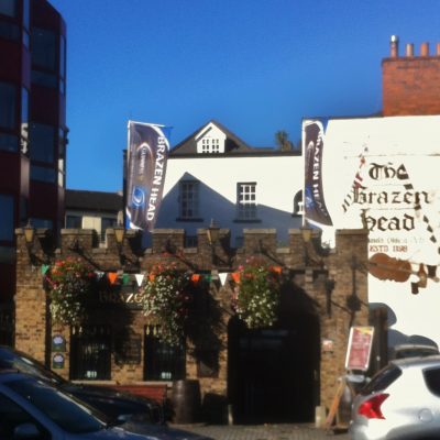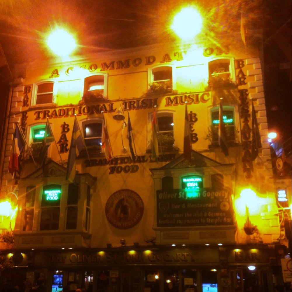 Stattdessen ging’s nun eben stilgerecht mit Ryanair von Bristol nach Dublin, um Donnerstagabend so schnell wie möglich vom Flughafen in den altbekannten Pub (O’Reilly’s) an der Tara Station zu gelangen. Jener hatte noch massig hannoversche Sticker vom 96-Europapokal-Gastspiel im August kleben und bot weiterhin das Pint Guinness für faire 3,30 € an. Erst am späteren Abend wurde der Standort nach Temple Bar verlegt. Aber während das Gros der deutschen Schlachtenbummler dort gerne 6 bis 7 € für’s Pint in den Touri-Nepp-Pubs zahlte, ging unsere Gruppe ins Peadar Kearney’s. Auch ein wohlbekannter Pub des 96-Auftritts und mit moderateren Preisen gesegnet (knapp 4 € pro Pint). Es gab Irish Folk live dargeboten und abgesehen von uns waren mutmaßlich wenige Touristen im Publikum.