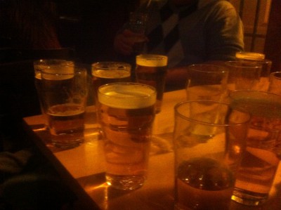 Am Abend bezog auch die Wohngemeinschaft „Gemeinde Harsum“ die Nachbarwohnung und wir konnten nun gemeinsam um die Häuser ziehen. Kulinarisch war der Mittwoch schon wieder ’ne günstige Angelegenheit. Es gab am Plaza de la Reina eine bei uns Hannoveranern beliebte Sandwichbar (100 Montaditos), die so verlockende Angebote wie 100 kleine Bier und 100 Mini-Baguettes für 100 € hatte und mittwochs generell große Biere für 1 € verkaufte . Ebenso war die bereits aus Madrid bekannte so genannte Eimer-Bar La Surena günstig und gut frequentiert. Es zeichnete sich bereits am zweiten Abend ab, dass die 150 €, die ich mir als vorläufiges Taschengeld aus Deutschland mitnahm, nur schwer bis Samstag unter’s Volk zu bringen sein dürften. Da half es auch nichts, dass wenigstens im Café Negrito, wo auch unter der Woche ein DJ bis tief in die Nacht auflegte, endlich mal über 2 € für einen halben Liter Bier aufgerufen wurden.