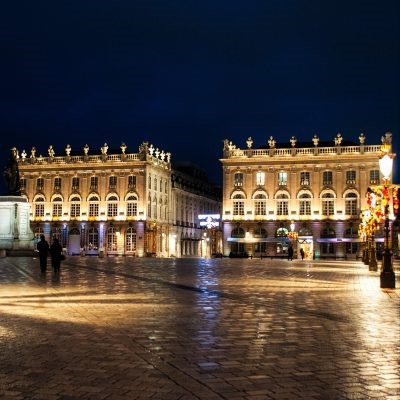 Nach diesem Stopp mussten wir komischerweise öfter anhalten als zuvor, aber wir erreichten Nancy dennoch früh genug, um vor dem Anpfiff in Ruhe im Hotel einzuchecken. Danach ging es zu Fuß zum Stade Marcel Picot in der Nachbargemeinde Tomblaine, wozu wir die sehenswerte Innenstadt Nancys einmal durch- und den Fluß Meurthe überqueren mussten. Besonders herausragend war der Place Stanislas mit seinem klassizistischen Gebäudeensemble und dem Triumphbogen Arc Héré. Nancy (oder Nanzig, wie ein Deutschtümmler sagen würde) hat es mit diesem architektonischen Gesamtkunstwerk (inklusive der zwei angrenzenden Plätze Place de la Carrière und dem Place d’Alliance) in die Liste des UNESCO Welterbes geschafft.