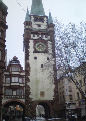 Das schöne Freiburg erreichten wir gegen Mittag. Das ließ noch genug Zeit für ein paar Getränke vor dem Spiel. In Freiburg bin ich immer gern. Lage und Architektur dieser Stadt haben mich schon vom ersten Besuch an überzeugt. Ein historischer Stadtkern mit imposanter Kathedrale, viel studentisches Flair und schöne Natur drumherum sind genau die Kombination, die ich liebe. Dazu ist das Klima dort unten in der Regel angenehmer, aber davon war kurz vor Weihnachten natürlich weniger etwas zu merken. Das Stadion liegt übrigens auch nett. Ziemlich zentral und dazu Ausblick auf die Berge. Nur gehört der Gästeblock darin zu den schlechstesten der Liga.