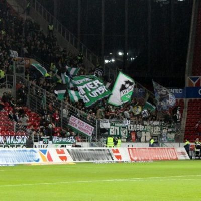Wir sollten doch bitte die Gastwirtschaft verlassen und in eine Nebenstraße folgen. Blöd, dass wir gerade eine neue Runde bestellt hatten und Bier lieber mochten als Stadtführungen von ungeschulten Guides. Der Mann drohte zwar noch, dass sie draußen warten würden, aber als wir wenig später einen Bus zum Stadion nahmen, hatten die Herren entweder andere Touristen gefunden oder sie wurden zwischendurch von der Polizei nach ihren Konzessionen als Stadtführer kontrolliert. Das Mainzer Stadion liegt ja mittlerweile auf der grünen Wiese außerhalb der Stadt und ist dementsprechend am besten mit Shuttlebussen (oder noch besser mit Taxis) aus der Innenstadt zu erreichen. Das Stadion ist eigentlich ganz okay und stimmungsfreundlich, aber ihm fehlt irgendwie der Charme. Die Stadionlandschaft in der Bundesliga hat einfach zu wenig Abwechslung zu bieten.