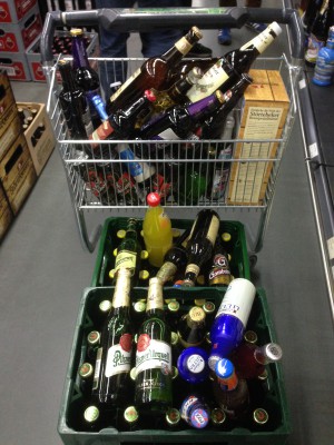 Die paar Kilometer waren natürlich schnell gemeistert und in Darmstadt, präziser im Stadtteil Eberstadt, steuerten wir den angeblichen größten Biermarkt der Welt an. Hier wurde die EC-Karte mal wieder zum Glühen gebracht und jede Menge Bierspezilitäten für die Rückfahrt und den Hausgebrauch wurden aufgeladen. Natürlich sollte auch der Fassbiergenuss nicht zu kurz kommen und so hieß das nächste Etappenziel Hausbrauerei Grohe. Dort in der Nähe konnten wir gut und gratis parken und trafen in dem Brauhaus unsere Darmstädter Bekannten. Der Laden war am Matchday proppenvoll und das Grohe-Bier mundete vorzüglich. Gemeinsam brachen wir zeitig zum Böllenfalltor auf, wo wir noch ein Pils in der Lilienschänke am Stadion trinken wollten.