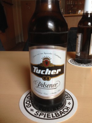 Und auch in (Bayrisch-)Schwaben sollte der Tag weiter im Zeichen des Bieres stehen. Wir suchten dort das Brauhaus Riegele auf, wo die zahlreichen prämierten Brauerzeugnissen des Hauses gekostet wurden. Das was die Braumeister dort kreieren, bekommt heuer allenorten die Trendbezeichnung Craftbeer, sie selbst nennen es aber weiterhin Bier. Und es ist einfach handwerklich gut gemachtes Bier. Besondere Spezialität: Der gestiffelte Bock. 0,1l Bockbier (hell oder dunkel) wird zusammen mit einer glühenden Eisenstange serviert. Jenes heiße Eisen taucht man nun kurz in das Bier ein. Der Restzucker karamellisiert dabei und das Bier schäumt cremig auf. Das Bier selbst ist auch nach der kurzen Prozedur noch angenehm kühl, der Schaum dagegen wohlig warm. Wirklich ein Hochgenuss.