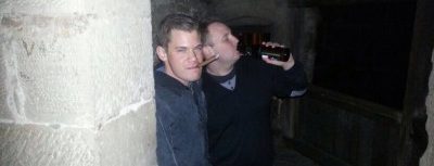 Auf dem Rückweg (nun mit Pumba zu fünft) stoppten wir nochmals im schönen Rothenburg, aber nach Einbruch der Dunkelheit war dort natürlich der Hund begraben. Nochmal Asi-Pinte musste nicht sein und so tranken wir ein paar mitgebrachte Biere auf der Stadtmauer, was natürlich auch seinen Charme hatte. Einzig warum sich die drei Dicken auf der Weiterfahrt vom Ziii auf die Rückbank verdrängen ließen, weiß ich bis heute nicht. Der Alkohol muss uns wohl willenlos gemacht haben. Jedenfalls war es nicht nur verdammt eng, nein, natürlich hatten wir auch noch unter dem Terrorregime des Ziiis zu leiden. Der drehte die Heizung regelmäßig bis zum Anschlag auf und als alle oberkörperfrei waren, rieß er alle Fenster auf, was bei winterlichen Temperaturen und 180 km/h der Untergang für unsere Immunsysteme war. Vielen Dank auch!