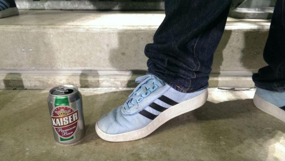 In der 66.Minute machte Augustynen dann auch noch das 2:1 und die ganze Mannschaft (exklusive Torwart) rannte zum Rentner mit der Schiebermütze, um mit jenem diesmal sogar eine Jubeltraube zu bilden. Stark! Wir prosteten uns auf dieses unterhaltsame Spiel mit unseren mitgebrachten Bierdosen zu, denn die kamen zum Glück mit rein ins Stadion. Der Ordner entdeckte zwar ein paar davon in unseren Jackentaschen, aber er meinte nur „Jungs, so nicht! In Deutschland müsst ihr eure Bierdosen auch aufmachen, wenn ihr sie zur Bundesliga mitnehmt. Das gilt hier auch!“. Also mit geöffneten Bierdosen auf die Tribüne spaziert…