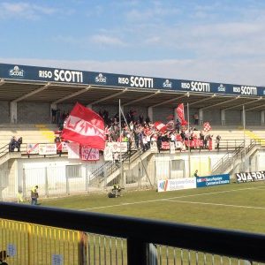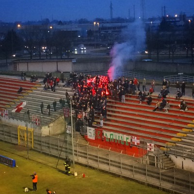 Der Tabellendritte aus Pavia (punktgleich mit dem Tabellenführer Alessandria und dem Zweiten Novara) spielte strukturiert und offensiv, während Mantova (aus der Tabellenregion von Monza und Venedig) gut dagegen hielt. Kein Vergleich zu den erbärmlichen Tabellennachbarn vom Vortag. Bereits nach 13 Minuten klingelte es allerdings im Gästetor. Winterneuzugang Mattia Marchia knipste nach Vorarbeit von Fabian Ernsts italienischem Zwillingsbruder Andrea Soncin. Allerdings steckte Mantova nicht auf und probierte mehrfach aussichtsreich auszugleichen. In der 31.Minute kam der umtriebige Stürmer Said Ahmed Said im Strafraum von Pavia zu Fall und verwandelte den zweifelhaften Elfmeter selbst. Da stürmte der Gästemob zum Zaun und feierte extrem, während die Spieler vor Freude erstmal ’ne Bande vor’m Gästeblock umkickten. Große Emotionen waren geboten, so wie man sich das als Fan wünscht.