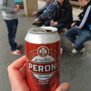 Pavia tütete die drei Punkte verdient ein und bleibt heißer Aufstiegsanwärter. War nett, die gelöste Siegesfeier von Mannschaft und Fans zu sehen. Erinnerte an eine norddeutsche U23 und ihre temporär stark angewachsene Fanschar, die leider in letzter Zeit nicht mehr ganz so oft jubeln durften. Wir spazierten dann zum Bahnhof und entdeckten dort günstiges Dosenbier. Da hatten wir jetzt richtig Bock drauf und deckten uns für die bevorstehende Fahrt nach San Siro mit allen Peroni-Dosen ein, die der Paveser Krämer feilbot.