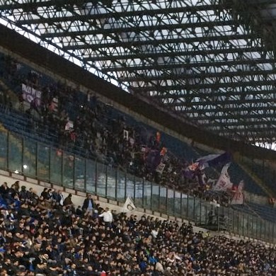 Dennoch stellte Inter zunächst die bessere Mannschaft und bei Guarins Pfostenknaller in der 35.Minute waren sie der verdienten Führung ganz nah. Mit 0:0 ging es in die Pause und wir befürchteten bereits, dass wir im dritten Anlauf doch noch ein für Italien obligatorisches torloses Unentschieden serviert bekommen. Aber da hatten wir die Rechnung ohne den eingewechselten Mohamed Salah gemacht. Der traf in der 56.Minute für die Fiorentina und der Ägyptermob auf der Gegengerade rastete aus. Ca. 20 Landsmänner von Salah mussten von den Ordnern am unteren Ende der Tribüne gebändigt werden. 10 Minuten nach der etwas überraschenden Führung, wurde Fremdkörper Podolski endlich entfernt (begleitet von lauten Pfiffen). Für ihn kam Shaqiri, der das Inter-Spiel nochmal enorm belebte, aber Icardi und der zu eigensinnig agierende Palicio vergaben große Chancen zum Ausgleich. So machte die Fiorentina am Ende zu neunt den Auswärtssieg klar (zwei Spieler verletzten sich noch kurz vor Schluss, bei bereits ausgeschöpftem Wechselkontigent).
