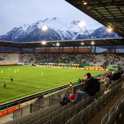 Das sah bei Stadioneröffnung noch anders aus. Der FC Tirol, also die im Sommer 1993 aus dem Traditionsverein FC Wacker Innsbruck ausgegliederte Fussball(profi)abteilung, gewann unter den Trainern Kurt Jara und Joachim Löw von 2000 bis 2002 drei Meisterschaften in Serie und war das fußballerische Nonplusultra Österreichs. Allerdings waren es Erfolge auf Pump, die noch 2002 im Lizenzentzug mündeten. Da der Ur-Verein FC Wacker Innsbruck (von 1915) bereits 1999 aus finanzieller Not heraus in die Abspaltung FC Tirol eingegliedert wurde (quasi die Reunion der getrennten Vereine von anno ’93), gründete man als ideellen, aber rechtlich nicht verbundenen Nachfolger den FC Wacker Tirol. Der sollte das Erbe des 1915er Traditionsclubs FC Wacker und des in junger Vergangenheit erfolgreichen 1993er FC Tirol gleichermaßen antreten.