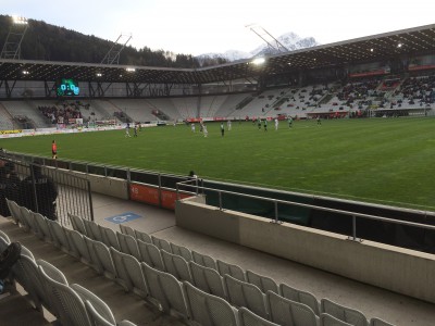 Pünktlich zum Anpfiff lieferte er uns am Neuen Tivoli ab, welcher 2000 eröffnet wurde und vor der EM 2008 nochmal auf 31.600 Plätze aufgestockt wurde. Der temporäre Oberrang verschwand aber völlig zurecht nach dem Turnier wieder, denn selbst die 17.400 Plätze der Arena heuer sind arg überdimensioniert. Bei sportlichem Erfolg wäre das Tivoli wohl halbwegs ausgelastet, aber davon hatte der FC Wacker in der jüngeren Vergangenheit wenig.