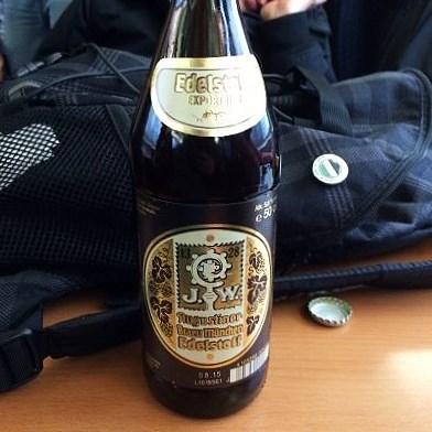 Der ICE war leider proppenvoll („Hm, komisch zu Beginn eines bundesweit langen Wochenendes?“) und der Unmut über meine Geiz-ist-geil-Mentalität in Sachen kostenpflichtige Reservierung wurde von Abteil zu Abteil lauter (4 € am falschen Ende gespart). Zum Glück fanden wir im letzten Wagen noch ein freies 6er-Abteil ohne weitere Reservierungen. Nun konnten wir ganz entspannt harte Mettwurst aus eigener Schlachtung und Augustiner Edelstoff frühstücken. Dazu wurden bis München die Top-Hits der Fussballgeschichte gehört (Gruß an u. a. Alberto Colucci und Udo Jürgens), sowie die üblichen hochwertigen Diskussionenge geführt.