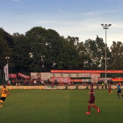 Durchgang Nr. 2 erlebte zwar durch da Silvas Einwechslung eine belebtere BFC-Offensive, aber ebenso eine gefährliche Kontermannschaft aus Auerbach. Die Hausherren hatten das 2:0 ein paar Mal auf den Fuß, ehe in der 57.Minute ein ausbleibender Pfiff im BFC-Strafraum das Publikum endgültig mitriss. Im Pöbeln waren die sowieso schon das ganze Spiel über gut, aber jetzt überschlugen sie sich zunächst im Hass auf den Unparteiischen (dem ich sogleich eine altersbedingt völlig unrealistische Stasi-Vergangenheit andichtete), gefolgt von wütenden „Auerbach! Auerbach!“-Rufen. In der 66.Minute beruhigten sich die vogtländischen Hitzköpfe etwas, das der VfB durch Wild (wieder nach Vorarbeit von Schlosser) auf 2:0 erhöht hatte. Und Schlosser selbst zog bei der nächsten Balleroberung im Mittelfeld aus 50 Meter einfach mal ab und düpierte damit in der 70.Spielminute den weit vor’m Tor stehenden BFC-Keeper. Ein Kandidat für das Tor des Monats!