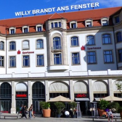 Die Rückkehr zum Stadion traten wir vom Hauptbahnhof aus per Taxi an, nachdem ich dort einen längeren Vortrag über Willy Brandts DDR-Besuch 1970 und die deutsch-deutschen Beziehungen allgemein gehalten hatte. Und den nächsten Vortrag hielt nun der Taxifahrer. Ohne Stichwort oder sonstwas kam der Transportgewerbetreibende auf das Thema Ausländer. Ein Reizthema für ihn. Er war der Ansicht, dass der Osten nicht rechts sei, sondern nur seit jeher einen anderen Umgang mit Ausländern pflege. Der Westen dagegen lasse sich seit 40 Jahren von den Ausländern auf der Nase rumtanzen. Wir sahen das traditionell anders, aber für eine fruchtbare Diskussion war die Taxifahrt zu kurz und das Stadion schnell in Sicht.