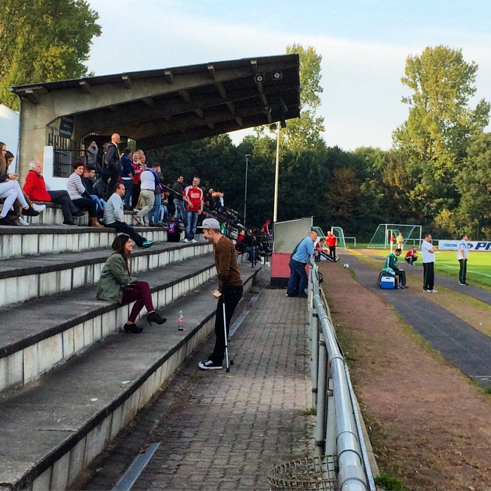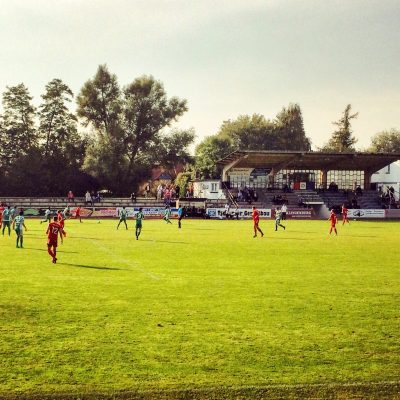 Einen Tag nach dem Tag der deutschen Einheit ging es mal wieder ins einstige Zonenrandgebiet. Diese Region hat bekanntlich nicht viel für’s Auge zu bieten, aber die Stadt Wolfenbüttel ist schon ganz nett. Und wenn man dort zum Abendessen eingeladen ist, kann man vorher natürlich noch ein bisschen Fußball gucken. Doch zunächst musste ich in Hildesheim ab 13:00 Uhr noch 90 Minuten selbst gegen das runde Leder treten. Ein paar Minuten weniger wären mir eigentlich lieber gewesen, aber man kann nicht alles haben. Also setzte ich nach Abpfiff zu meinem schnellsten Sprint des Tages an und konnte wenige Minuten später frisch geduscht die zweite Sportdisziplin des Tages starten; Motorsport. Die 48 km von Hildesheim nach Wolfenbüttel waren mit sportlichem Fahrstil in 30 Minuten machbar, so dass mein Bruder und ich das Meeschestadion pünktlich zum Anpfiff um 15:30 Uhr erreichten.
