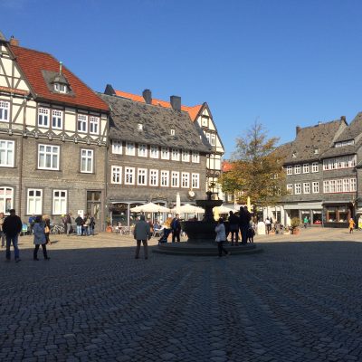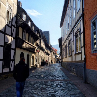 In die alte Kaiserstadt fuhren wir morgens nach dem Frühstück und parkten gleich in Stadionnähe, von wo wir durch das Breite Tor in die pittoreske Altstadt spazierten. Dort konnten wir bereits um 11 Uhr im Brauhaus einkehren, wo kreative Brauer in der kleinen Hausbrauerei am Werk sind. In erster Linie vermarkten sie dort das Goslarer Traditionsbier Gose, das streng genommen nach dem in Deutschland fast schon mythisch überhöhten Reinheitsgebot kein Bier ist (aufgrund der Zusätze von Koriander und Salz). Wir machten dort sogleich eine Bierprobe, um neben der Gose noch weitere Biere zu probieren. Die Gose selbst schmeckt säuerlich und wurde, wenn früher die Spontangärung misslang, eben zu Essigsäure. Dass man in Goslars Braustätten auch nach der Entdeckung des Hefepilzes durch Pasteur weiter auf Spontangärung setzte, besiegelte den langsamen Niedergang des einstigen Goslarer Exportschlagers. Mich erinnerte die Gose nicht nur namentlich, sondern auch geschmacklich an die belgische Biersorte Geuze. Dass sich Geuze von Gose ableitet, bestreiten die Belgier allerdings.