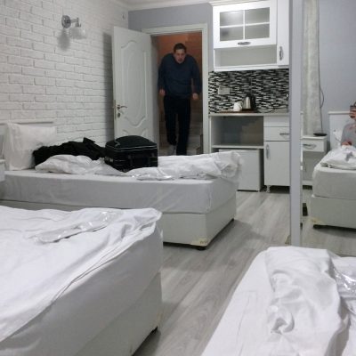 Istanbul wurde planmäßig um 16:45 Ortszeit erreicht und am Ausgang des Flughafens wartete bereits unser Chauffeur Mr Baris und reckte das Schild mit der Aufschrift „Mr Sasa Snepanovic“ in die Höhe. Mit Vollgas ging es nun Richtung Taksim und die ersten Eindrücke der Stadt waren bereits überwältigend. Wirklich eine Mega-City, deren Lichter in der Abenddämmerung unsere Blicke fesselten.