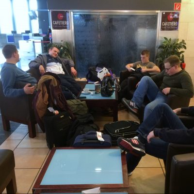 Wir reisten in zwei Gruppen. Vier Mann mit Anschlussreise nach Spanien via WET-Tour (Fat Lo, Ole, El Glatto und ich) und die anderen vier als Reisegruppe Istanbul only im PKW (InterCityBerger, Milano Pete, Olbert und Pumba). Die WET-Gruppe freute sich sehr, dass die PKW-Gruppe unser Gepäck für Reise Nr. 2 mitnahm und bis Mittwoch im geparkten Auto zwischenlagerte. So mussten wir nicht Gepäck für acht Tage in einen handgepäcktauglichen Koffer quetschen und konnten kommenden Mittwoch in Düsseldorf bequem die Koffer austauschen. Bequem war auch die Bahnfahrt über Löhne/Westfalen, wo es beim Zwischenhalt ein passendes Frühstück in Form einer Chicken Döner Pizza gab und insgesamt vier Stunden Bahnreise bei guten Gesprächen wie im Fluge vergingen.