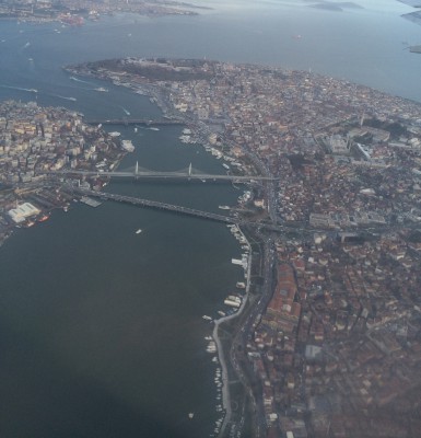 Am Mittwochmorgen waren die Koffer schnell gepackt und wir wurden nach zähen Verhandlungen mit zwei Taxifahrern einig, die uns zum Sabiha Gökcen Airport chauffieren durften. Die 38 km vergingen natürlich nicht wie im Flug. Der Verkehr zwischen 7 und 9 Uhr war wenig überraschend die Hölle, doch die schönen Ausblicke und ein sattes Morgenrot machten das Ganze dennoch zum Genuss. Auf der asiatischen Seite wurde der Verkehr kurzfristig besser, aber schon bald ging es wieder schleppend voran. Hier konnte man bewundern, wie die Türken aus vier Spuren einfach sechs oder sieben machten und unser Taxifahrer fröhlich begann mit unserem Leben zu spielen. Waren ein paar irre Manöver drin, die ich wohl nicht wagen würde. Nach 80 Minuten Fahrt erreichten wir dennoch alle lebendig den Flughafen. Selbstverständlich wollte der Taxifahrer jetzt noch mehr Geld wegen der Brückenmaut, wegen zuviel Verkehr, wegen zuviel Gewicht und wahrscheinlich auch, weil heute ein Mittwoch vor einem Donnerstag war und die Erde sich um die Sonne dreht. Wir ließen ihn lächelnd stehen und wünschten viel Erfolg bei den nächsten Touristen.