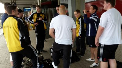 Und da spaziert man ganz unbedarft durch den Prager Hauptbahnhof und läuft plötzlich dem Autor des Buches „How to survive ohne Fußball“ mit weiteren Funktionären des HFC Falke in die Arme. Die Welt ist ein Dorf. Bewaffnet mit zahlreichen Kofolas und geschlossen oberkörperfrei wurde nun die Fahrt zurück nach Deutschland angetreten und dabei (beim Blick aus dem Zugfenster) beschlossen dieses Usti nad Labem demnächst mal zu besuchen. Zitat von Olbert: „Zechien sieht mich auf jeden Fall bald wieder.“ Er erntete dafür von allen wortlose Zustimmung.