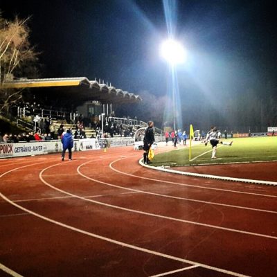 Auch die Fussballspielvereinigung Budissa (abgeleitet vom latinisierten Stadtnamen Budissin) empfing uns in Bautzen gastfreundlich und erhob keinen Eintritt am circa 5.000 Zuschauer fassenden Stadion an der Müllerwiese. Zwischen 2000 und 2002 wurde die ganze Anlage zuletzt saniert und auch 1,5 Jahrzehnte später macht das Stadion noch einen sehr gepflegten Eindruck. Nur einen VIP-Bereich suchten wir vergeblich und der Presseraum war nur eine zweckentfremdete Umkleidekabine. Das gab Abzüge in der B-Note, aber gut, hier waren halt alle 258 Zuschauer gleich. Und da es kostenlosen Glühwein gab, durfte sich jeder very important fühlen.