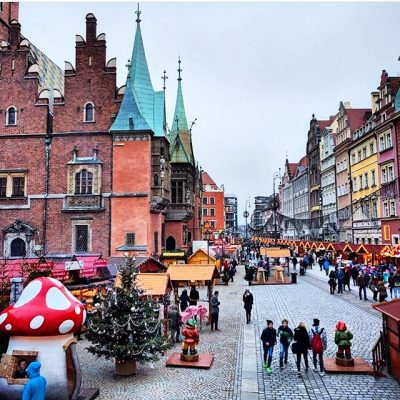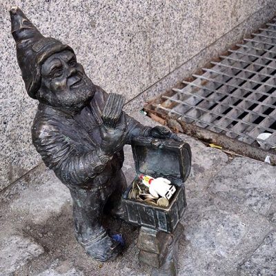 Vom bizarren Basar ging es dann zu Fuß in Richtung Innenstadt und die architektonische Pracht Wrocławs verzauberte uns einmal mehr. Ferner feierten wir, wie schon im alkoholisierten Zustand in der Vornacht, auch nüchtern die ganzen ca. 30 cm großen Zwergskulpturen im Stadtbild ab. Wo man auch hinging, überall waren diese kleinen Wichtel zu finden. Die Recherche ergab, dass sie wohl auch so einen bisschen an den Widerstand gegen das kommunistische Regime erinnern sollen. In den 1980er Jahren gab es Demos in Zwergenkostümen und guerillamäßig wurde dann auch der erste gusseiserne Zwerg in der Innenstadt aufgestellt. Mittlerweile sind es über 300 und ein echtes Touri-Highlight in Wrocław. Es gibt sogar Leute, die behaupten, Olbert kann mit ihnen sprechen. Oder verwechsel ich das jetzt mit Teddybären?