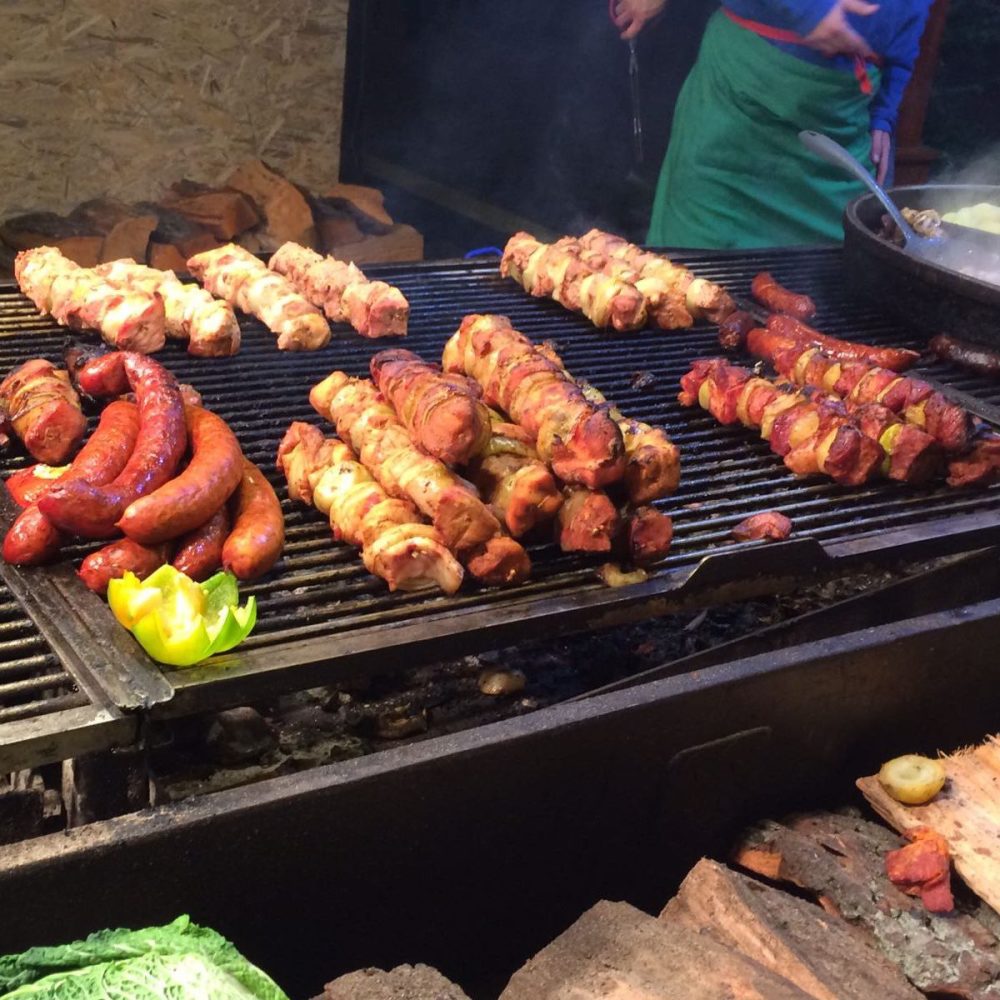 Gegen 18 Uhr trafen wir uns dann auf dem Weihnachtsmarkt am Rynek wieder und schlemmten vorzügliche riesige Schaschlikspieße zum fairen Preis von je 3 €. Nach Schlaf und Speis war auch ich für das Nachtleben Wrocławs motiviert und wir streiften ein wenig durch die Seitenstraßen, um eine tourifreie Kneipe zu finden. Alle unsere Wünsche erfüllte der Paka Pub in der Straße Nozownicza. Ein Pint kostete 5 Złoty, also gerade mal 1,10 €. Hier konnten wir in gediegener Atmosphäre ein paar Runden trinken, ehe wir uns so richtig ins Getümmel werfen würden.
