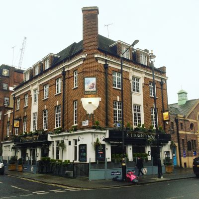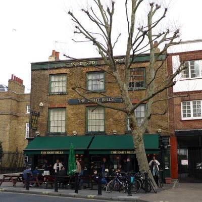 Nach Spielende wurde keine Zeit vergeudet, um den auf dem Hinweg aufgefallenen Pub The Eight Bells an der Putney Bridge anzusteuern. War auch gut so, denn so gab es eine Sitzgelegenheit in der hinterletzten Ecke für unser Quintett, bevor der Pub wenige Minuten später durch weitere Stadionbesucher brechend voll wurde. Wir schauten hier bei ein paar Pints Fuller’s London Pride Wales vs. England (Rugby, Six Nations). Der Pub war nebenbei von 1886 bis 1888 provisorische Umkleidekabine des Fulham FC und außerdem 1986 nochmal groß in den Schlagzeilen, weil der Serienkiller Stockwell Strangler unweit des Pubs sein letztes Opfer ermordete. Die Schreie der 83jährigen Frau waren aber nicht zu hören, weil im Pub eine laute Party zu Ehren der Hochzeit von Prince Andrew und Fergie war.