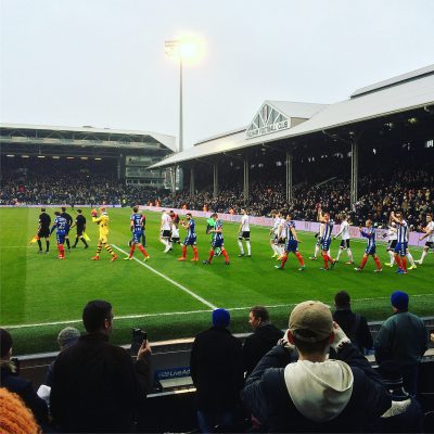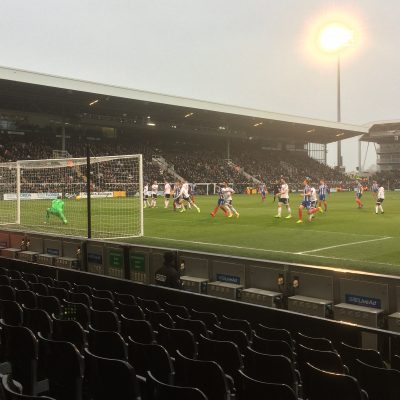 Es lohnt sich ab und zu mal die Wochenendverbindungen von Hannover in die weite Welt zu scannen. So fand ich bereits im Oktober 2016 heraus, dass man mit Eurowings im Februar 2017 wieder mal für 60 € return pro Person nach London-Stansted fliegen kann. Mit Bene, Ole, dem Holzmichel, El Glatto und Milano Pete hatte ich schnell fünf Mitstreiter zusammen und zu sechst gab es zwei Nächte im Meininger Hotel am Hyde Park für 55 € pro Person. Der Spielplan meinte es ebenfalls ganz gut mit uns. Denn Samstagnachmittag sollte Fulham gegen Wigan spielen und das Craven Cottage stand schon lange auf meiner Liste. Ich orderte deshalb im Vorverkauf fünf Tickets – El Glatto musste leider berufsbedingt wieder abspringen – beim Fulham FC à £ 20 (Hintertortribüne), welche per Royal Mail binnen 48 Stunden zugestellt waren. Noch vorzeitiger wurde außerdem der Stansted Express gebucht, der für richtige Early Birds nur £ 7 pro Fahrt und Person kostet und dann mit den günstigen Busangeboten preislich konkurrieren kann.