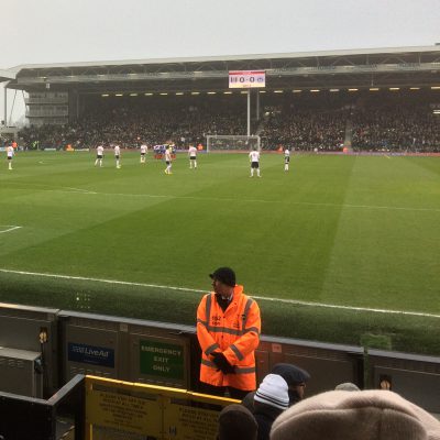Als nächstes lag nun auch noch der sehenswerte Fulham Palace am Wegesrand, doch das einzige Grade I gelistete Bauwerk im London Borough of Hammersmith and Fulham konnte aus Zeitgründen leider nicht genauer inspiziert werden. Wir konnten nur einen flüchtigen Blick auf den Palast werfen, der mindestens seit dem 11.Jahrhundert und bis 1973 Londoner Bischofsresidenz war (mittlerweile residiert der Bischof unweit der St Paul’s Cathedral in der City). Es folgte ein gepflegtes Wohngebiet und fünf Minuten vor Anpfiff hatten wir schließlich unsere Luxuskörper durch die engen Drehkreuze gezwängt.