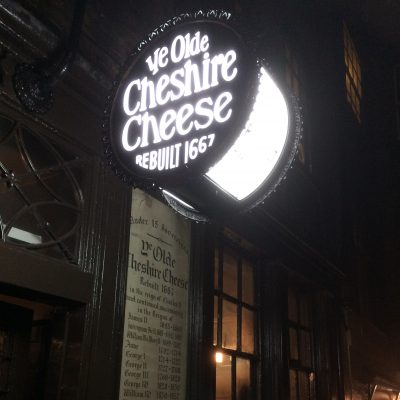 England setze sich heute leider knapp gegen Wales durch und mit der District Line ging’s anschließend zur Station Blackfriars, wo der gleichnamige Pub der erste auf unsere Liste sehenswerter Schankwirtschaften war. Wir gönnten uns in dem Art-Noveau-Eckhaus von 1875 (Grade II listed) ein Nicholson Pale Ale, ehe wir mangels Sitzgelegenheiten weiter zum Ye Olde Cheshire Cheese zogen. Ein Pub aus dem 16.Jahrhundert, der nach dem großen Feuer von 1666 sofort wieder aufgebaut wurde und daher seit vielen hundert Jahren durstigen Kehlen etwas Gutes tut. Wir genossen Taddy Lager aus dem Hause Samuel Smith (jene Brauerei betreibt auch den Pub) und Ole und der Holzmichel gönnten sich Fish & Chips zum Dinner. War ein schöner, verwinkelter Pub, der ebenfalls Grade II in der Denkmalliste des Vereinigten Königreichs von Großbritannien und Nordirland gelistet ist.