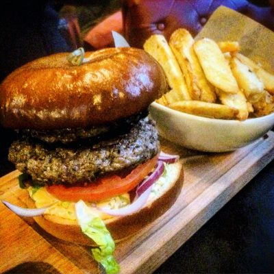 Ähnlich wie der Kindergeburtstag gönnten wir uns Burger, nur dass unsere doch etwas größer ausfielen. Die Patties waren laut Karte aus Rumpf, Kamm und Knochenmark des Rindviehs geknetet und wurden pink gegrillt im Brioche Bun serviert. Dazu gab es neben würziger Sauce und Grünzeug auch geile Fritten aus der ganzen Kartoffel geschnippelt. War seine 10 £ wert und ich begleitete den kleinen Koloss mit Hackney Red Ale (4 £). Neben dem gemütlichen Gastraum, gab es außerdem einen großen Biergarten. Ideal für die Raucher und im Sommer sicher sehr beliebt. Während ich mir noch ein Truman’s Swift Golden Ale genehmigte, dachte ich darüber nach bald mal vor einem Spiel des Tottenham Hotspur FC wiederzukehren.