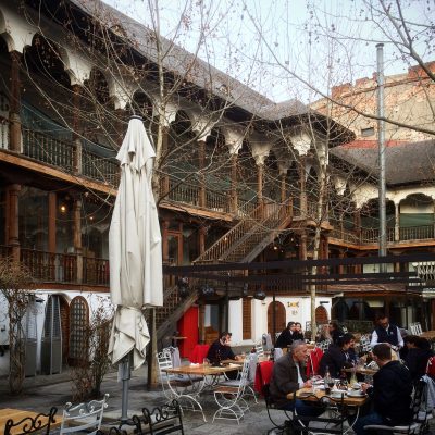 Bis auf die erwähnte schöne Kirche standen allerdings nur noch Ruinen vom einstigen Fürstenhof. Besser in Schuss war da schon die benachbarte Karawanserei aus osmanischer Zeit. Als große Gastwirtschaft mit Biergarten im Innenhof, erfreut sich das Hanul lui Manuc enormer Beliebheit bei den Touristen. Unser Hungergefühl war beim Besuch der Anlage allerdings noch moderat. Wir spazierten lieber noch ein wenig in der Abendsonne durch das Altstadtviertel Lipscani und die namensgebende Strada Lipscani (Leipziger Straße, wo früher Händler aus eben jenem Leipzig ihre Waren feilboten).