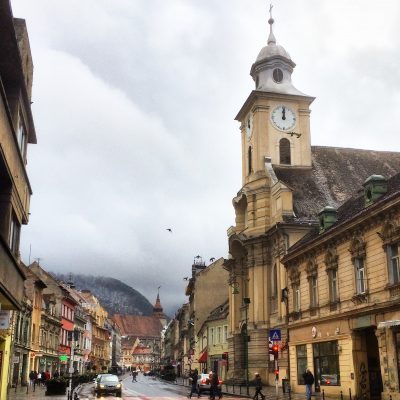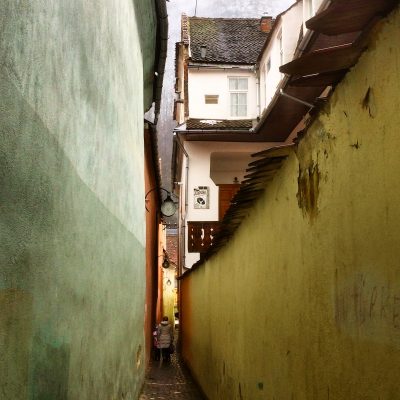 Ein weiteres Highlight war nun die lediglich einen Steinwurf entfernte Biserica Neagră (Schwarze Kirche) aus dem 14.Jahrhundert. Sie überragt mit 65 Metern Turmhöhe den mittelalterlichen Stadtkern und gilt als bedeutenster gotischer Kirchenbau in Rumänien. Einen Gang hinein ersparten wir uns allerdings (kostet sogar ein paar Lei), da es seit der Reformation eine protestantische Kirche ist und wir ein schmuckloses Inneres befürchteten. Stattdessen wurden weitere Meter im Freien gemacht. So sahen wir noch die schöne Synagoge des Ortes und die schmalste Straße Rumäniens; die nur 111 bis 135 cm breite Strada Sforii (Fadengasse).