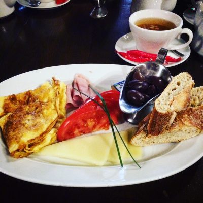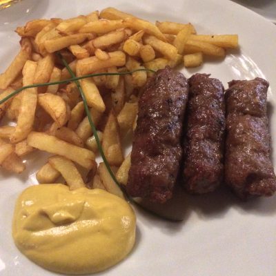 Während das Dessert gegen 14 Uhr serviert wurde, spielte bereits ein Trio mit Geige, Violine und Klavier Walzer-Kompositionen von Johann Strauß und Antonin Dvorak. Mit dieser Musik und in diesem Ambiente, war es eine gelungene Zeitreise in die Belle Époque. Ach, und Max ist natürlich zwischendurch auch nicht verhungert. Der angehende Akademiker hatte sich für den Studententeller entschieden und bekam Mititei, Fritten und einen Krug Bier für zusammen ca. 3,50 €. Wir dagegen mussten 2,20 € extra für das bei uns nicht inkludierte schmackhafte Hausbier (0,5 l) löhnen.