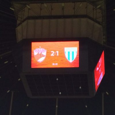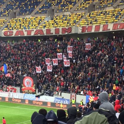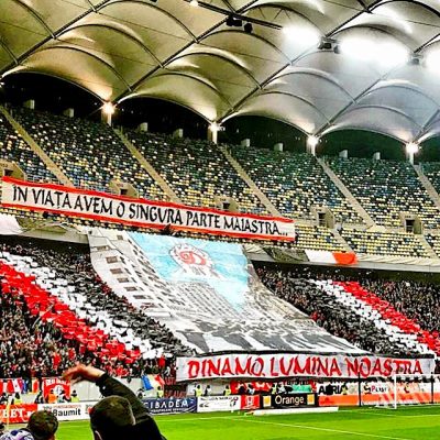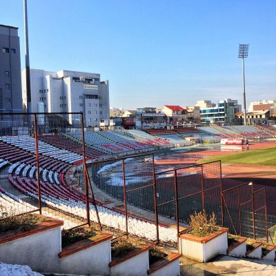 Auch diese Fahrt endete fahrplangemäß (19:25 Uhr) und somit war noch eine gute Stunde bis zum Anpfiff beim 1.Liga-Topspiel von Dinamo București gegen CSU Craiova. Leider regierte vor dem Bahnhof die Taxi-Mafia und man weigerte sich mit Taxameter zu fahren. Es wurden Fantasiepreise von 20 Lei aufgerufen, was wir aus Prinzip nicht akzeptieren wollten. Also ging es erstmal zu Fuß los und um die Ecke war ein Fahrer mit 15 Lei immerhin etwas realistischer und wir hatten keinen Bock wegen circa einem Euro etwas vom Spiel zu verpassen. Kurz vor 20 Uhr wurden wir am Stadionul Dinamo abgesetzt und sahen, dass das Flutlicht nicht brannte. Hier würde in 30 Minuten definitiv kein Spiel stattfinden. Da hatten die üblichen Internetquellen, die unisono dieses Stadion als Spielort angaben, versagt. Eine kurze Recherche ergab die Verlegung in die Arena Națională (das rumänische Nationalstadion).
