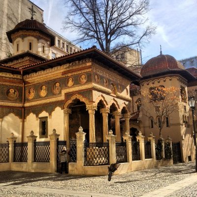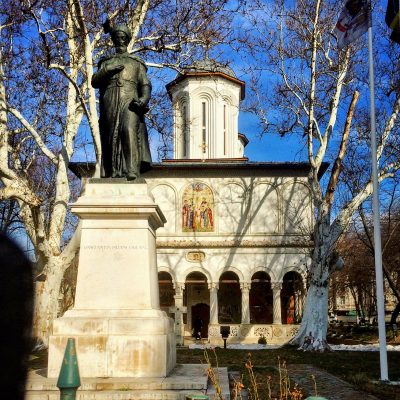 Sehr satt schauten wir uns auf dem Weg zum Appartement noch ein paar Sehenswürdigkeiten an. Den Auftakt machte dabei die rumänisch-orthodoxe Stavropoleos-Klosterkirche. Wie fast alle Bukarester Kirche ein relativ kleines Gotteshaus, welches aber außen und innen mit schönen Ikonen besticht. Weitere sehenswerte Kirchen und Profanbauten am Wegesrand waren nun die Bisereca Sfantul Gheorghe Nou, das Spital Coltea, die Universität, die armenisch-apostolische Kirche und schließlich noch die mit Kolonnaden umsäumte griechisch-orthodoxe Kirche, die bei unserer Unterkunft gleich um die Ecke war. Wir waren im Sectorul 2 untergebracht, östlich des Stadtkerns. Der Sektor wirkte für westlich verwöhnte Augen vielleicht zunächst nicht besonders einladend, aber ich denke für Bukarest war das eine solide Mittelklasse-Gegend.