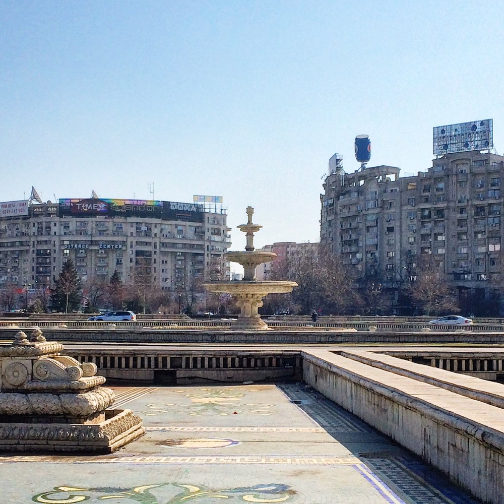 Von Nordkorea hatte Ceausescu den ins völlig Absurde abgeglittenen Führerkult um Kim Il Sung adaptiert und ebenso architektonische Inspiration für die Umgestaltung seiner Hauptstadt gewonnen. Daher wurde am heutigen Vereinigungsplatz auch das Herz der Alstadt (das Basarviertel) dem Erdboden gleich gemacht und durch brutalistische Plattenbauten ersetzt. Aber in den schönen Jahreszeiten, wenn der Park blüht und die Brunnen Wasser führen, soll das hier dennoch ein beliebter Treffpunkt der Bukarester Bevölkerung sein. Vielleicht erlebe ich das Erbe des Sozialismus ja auch nochmal irgendwann im Frühling oder Sommer.