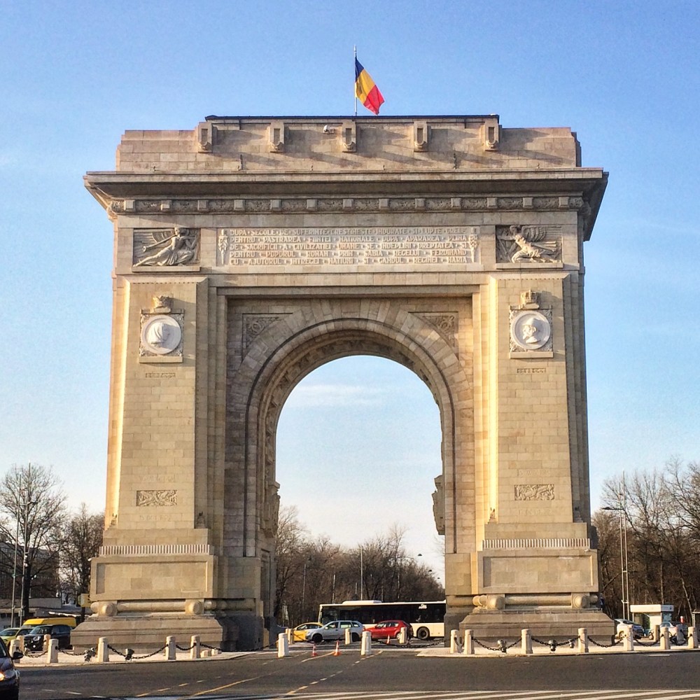 Der Bukarester Flughafen Otopeni wurde pünktlich nach zwei Stunden Flugzeit erreicht. Mit dem Bus 783 ging es nun für 3,5 Lei (0,77 €) in die Innenstadt (Fahrzeit circa 30 Minuten). Heute war erfreulicherweise der erste warme Tag des Jahres in der Walachei. Die Gewässer waren zwar teilweise noch gefroren, aber das Thermometer kletterte auf 18° Celsius. Schön war das Meiste am Wegesrand dennoch nicht anzusehen und erst im Stadtzentrum wurde die Architektur charmanter. Dafür stellten wir schnell fest, dass Bukarests Innenstadt ein gefährliches Pflaster ist. Max und Ole wurden beide von Tauben vollgekackt und meine Schadenfreude hielt nur solange, bis ich eine Tretmine der zahlreichen streunenden Hunde erwischte.