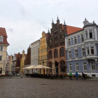 Die Angst vor einem Liebesabenteuer mit unkalkulierbarem Ausgang trieb mich auf einen circa 5 km langen Altstadtspaziergang, während Kurt und Bega lieber am Bahnhof frühstücken wollten, da das Wetter eh scheisse war und sie Hunger hatten. Doch ich war vorher noch nie in Stralsund und wie immer und überall neugierig. Schnell war ich schwer begeistert von der Stadt vor den Toren der Insel Rügen. Die Altstadt ist von viel Wasser umgeben und dazu existieren über 1.000 historische Gebäude, wovon die Mehrheit seit 1990 aufwendig saniert wurde. Dementsprechend ist Stralsund zusammen mit Wismar 2002 ins Welterbe der UNESCO aufgenommen worden.