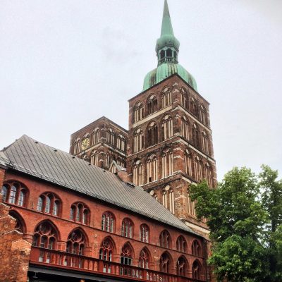 Es existieren noch sehenswerte Reste der Stadtbefestigung, wie das Kütertor und das Kniepertor. Dazu gibt es diverse Klöster und natürlich auch bedeutende Kirchen. Jeder, der mich kennt, weiß wie mir auf Entdeckertour in so einer Stadt das Herz aufgeht. Nur einen Wehrmutstropfen gab es; das historische Rathaus, eines der herausragendsten Profanbauwerke der Backsteingotik, war eingerüstet. Dafür war wenigstens die größte Kirche der Stadt, die mit dem Rathaus ein tolles Ensemble bildet, in voller Pracht zu bewundern. St. Nikolai ist ein Backsteinbau aus dem 13.Jahrhundert, dessen höchster Turm über 100 Meter in den Himmel ragt. Die Pforte des Westportals ist üppig verziert und gerne hätte ich die Zeit gehabt das Innere mit seinem geschnitzten Hochaltar und der astronomischen Uhr aus dem 14.Jahrhundert zu inspizieren. Und auch für den Stralsunder Hafen fehlte die liebe Zeit.