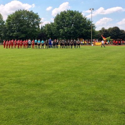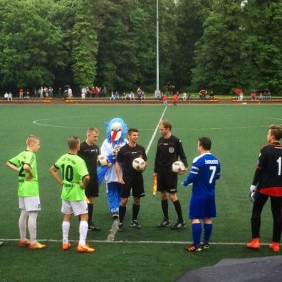 Nun also Kreispokalfinale. Da Bodenburg mich im Halbfinale so entzückte, waren die Sympathien natürlich klar verteilt. Außerdem hat der finanziell anscheinend gut aufgestellte SV Newroz bereits mit der Kreismeisterschaft und dem damit verbundenen Aufstieg in die Bezirksliga genug erreicht. Da darf ruhig ein anderes Team den Heinz-Richter-Pokal in Richtung Schloss Marienburg recken, dachte ich mir. Dass die Bodenburger jedoch an diesem Wochenende auch ihre Saisonabschlussfahrt nach Düsseldorf hatten, machte meine letzten Hoffnungen auf einen Außenseitersieg zunichte. Da half auch nicht, dass bei Newroz die zwei ehemaligen Regionalliga-Fußballer Agron Luma und Philipp Schlichting gesperrt waren. Ich glaube es wurde trotzdem ein Kader aufgeboten, bei dem jeder mindestens mal Bezirksliga gespielt hatte und es vor allem immer noch könnte.