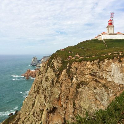 Mit der Gewissheit im Gepäck, sowieso nochmal für eine ausgiebige Inspektion aller Paläste wiederzukehren, fuhren wir schneller als gedacht weiter zu Europas westlichstem Punkt. Das stürmische Cabo de Roca wurde zusammen mit diversen Reisebussen über kurvige Bergstraßen erreicht. Das Plateau des Kapfelsens erinnerte irgendwie an den Gipfel des heimatlichen Brocken. Und deutsch wurde hier natürlich auch gesprochen (von zahlreichen Funktionskleidungsträgern). Die Leute, die wirklich so aussahen, als wären sie zum Bergsteigen hier, ereiferten sich mächtig über leichtfertige Touristen und Einheimische, die einen Trampelpfad hinter der Absperrung (die steht da nicht ohne Grund!) auf den Klippen langspazierten. Zitat der empörten Kopfschüttler: „Hier denkt wohl jeder, er kann machen was er will. Und da hinten, die beiden Polizisten, schauen auch nur zu!“
