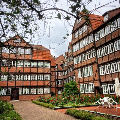 Weiter ging der Spaziergang nun in die Peterstraße, auch Komponistenquartier genannt und Heimat des Hamburger Brahms-Museums. In den 1960er Jahren hatte der Hamburger Mäzen Alfred Toepfer dort verschwundene historische Bürger- und Kaufmannshäuser aus dem 17. und 18.Jahrhundert rekonstruieren lassen. Im historischen Kontext wollen diese Gebäude zwar nicht so recht in die Neustadt passen (keins davon stand früher in dem damals eher ärmlichen Viertel), aber sie vermitteln doch einen schönen Eindruck von Alt-Hamburg. Das tut übrigens auch die Krameramtsgasse im Schatten des Hamburger Michels. Hier handelt es sich wirklich noch um althamburgische Bausubstanz. Wer Hamburgs Hauptkirche St. Michaelis besucht oder zum Beipiel mal Labskaus im Old Commercial Room speist, sollte unbedingt um die Ecke einen Blick in den Hof der Krameramtsstuben (Krayenkamp 10) wagen. Die Hamburger Zunft der Kaufleute hatte hier im 17.Jahrhundert Witwenwohnungen errichtet und es handelt sich um die letzte geschlossene historische Hofbebauung der Stadt.