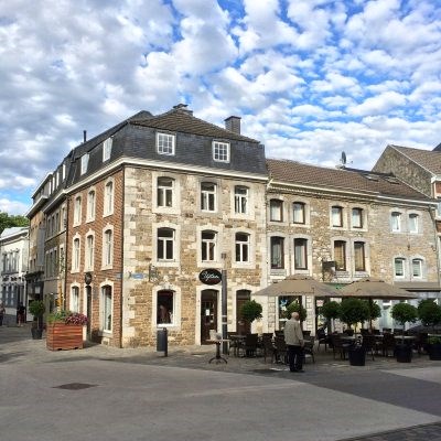Jetzt hatte ich bis zum Anpfiff (20 Uhr) genug Zeit für einen gemütlichen Stadtspaziergang durch die Hauptstadt der Deutschsprachigen Gemeinschaft (DG) unseres Nachbarlandes. Ja, in Eupen spricht man Deutsch. Und zwar als Muttersprache. Nichtsdestotrotz versprüht der Ort schon belgisches bis französisches Flair. Gerade an einem Sommerabend, wo die Brasserien den zahlreichen Gästen auf dem bestuhlten zentralen Platz Wein oder kleine belgische Biere servierten.