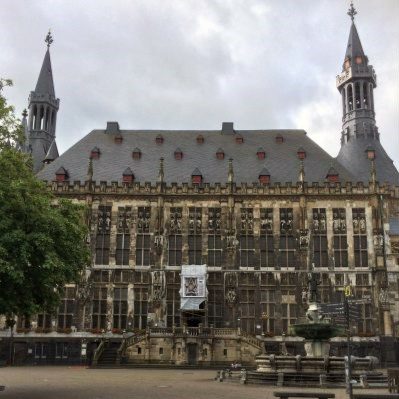 Gut gestärkt konnte nun mein Marsch nach Richterich begonnen werden. Vom Dom (siehe Titelbild) spazierte ich über Marktplatz und Pontstraße hoch zum Salvatorberg (229 m über NN). Anschließend spazierte ich den Nordhang des benachbarten Lousberges entlang, wo sich ein schöner Ausblick auf Aachens größtes Stadion ergab. Nächstes Ziel war das Schloss Rahe im Stadtteil Laurensberg. Es ist wirklich ein sehr schönes Wasserschloss und aufgrund seiner abseitigen Lage kein wirklicher Touri-Magnet. Stattdessen scheint es bei Einheimischen für Hochzeitsfeiern hoch im Kurs zu stehen, wie der Veranstaltungsplan verriet.